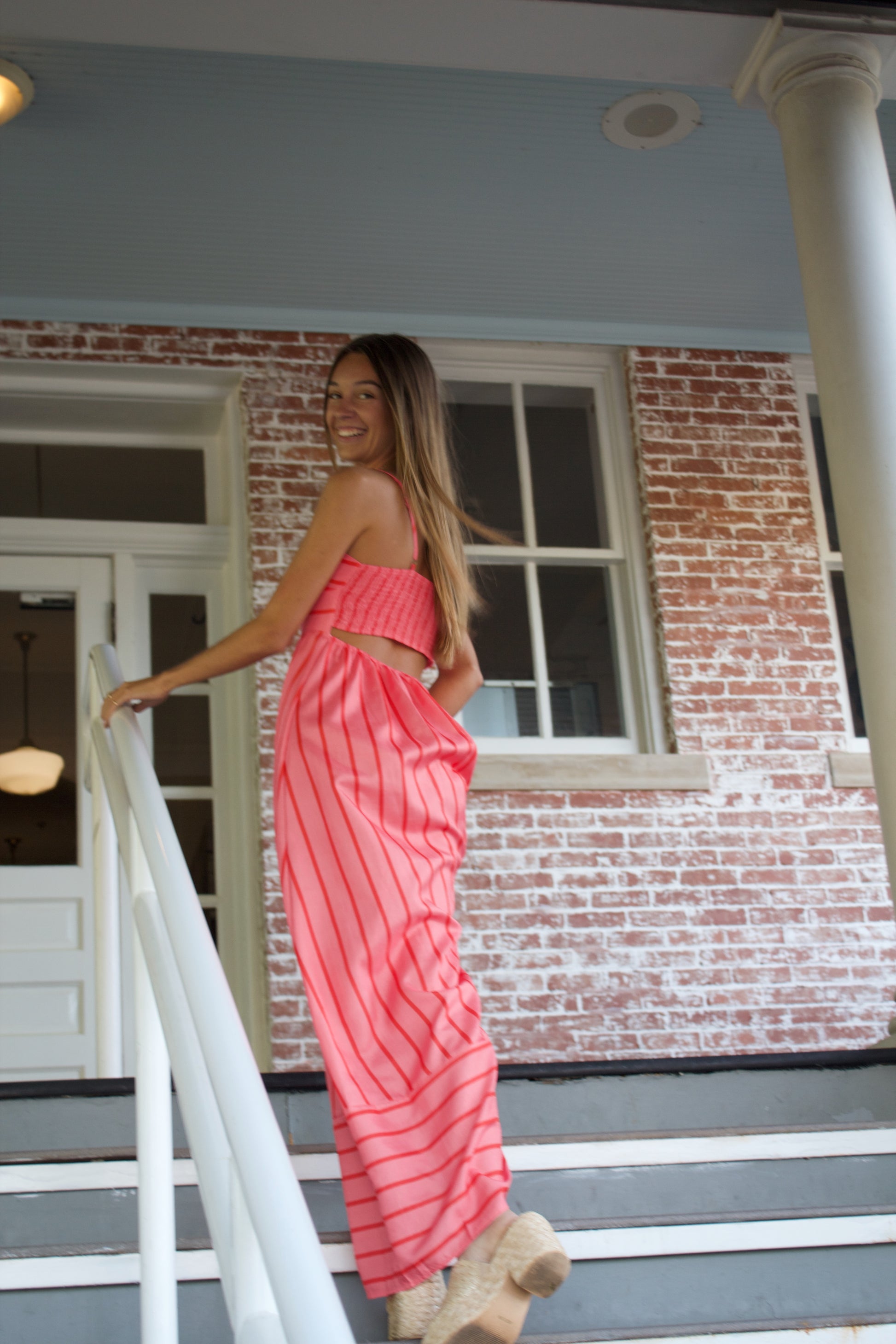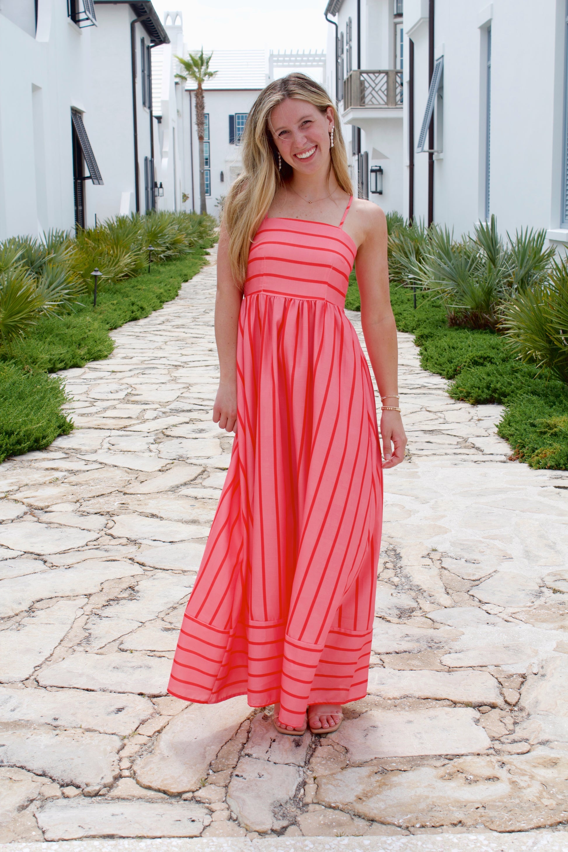 The perfect pInk + red striped sundress... Do I need to say more? This breathable, lightweight fabric makes it a perfect option for a hot summer day.