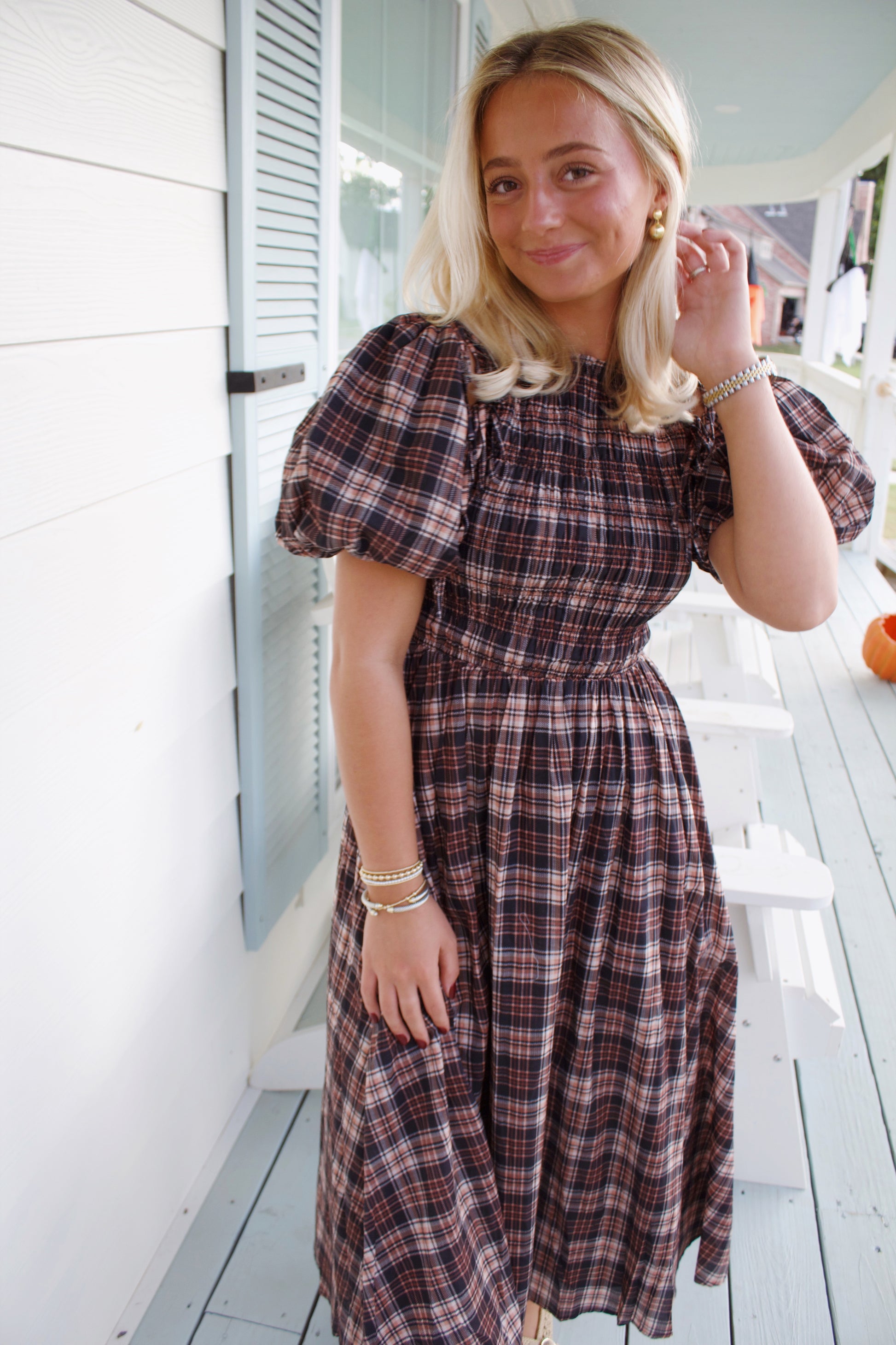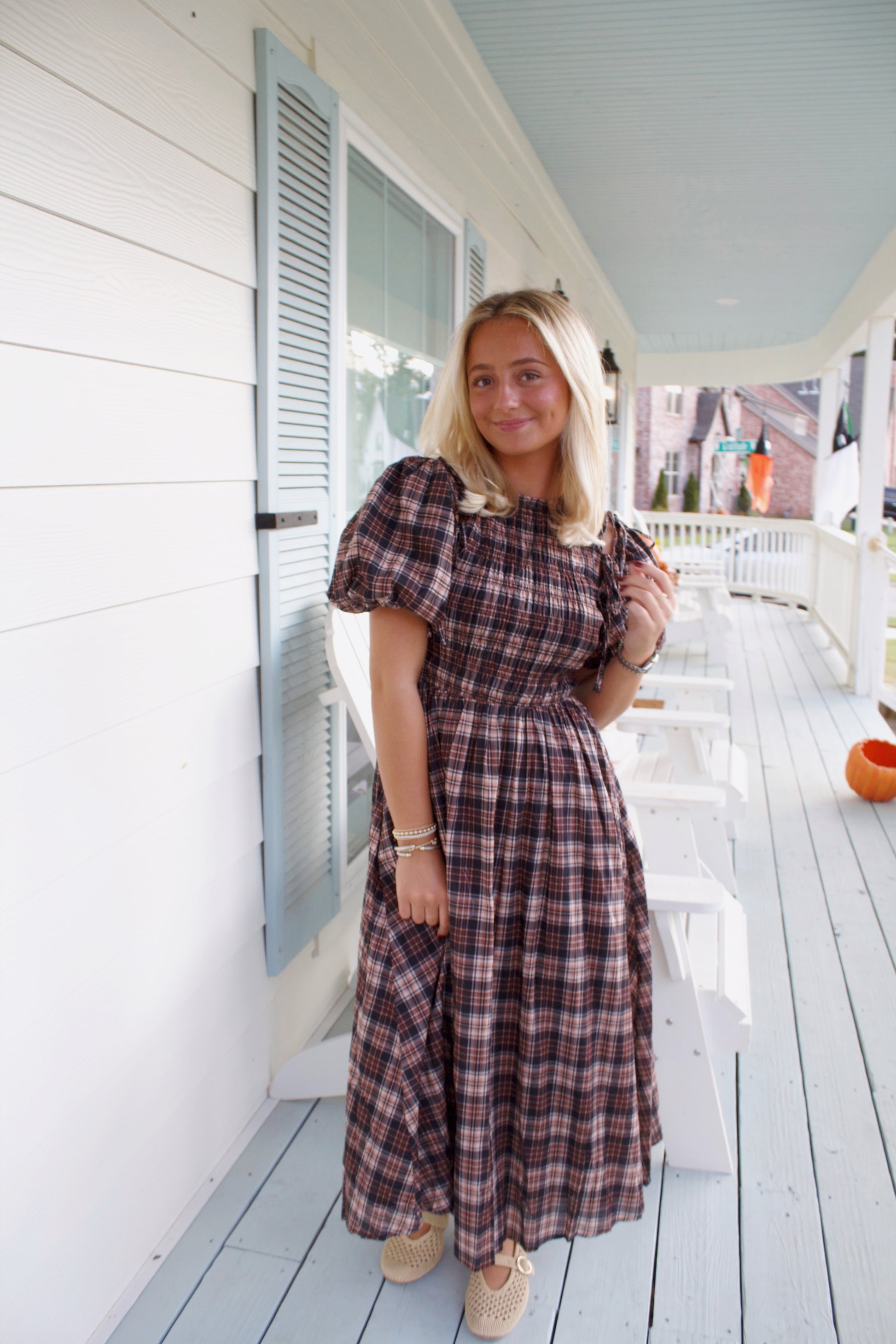 The cutest midi dress for fall! With puff sleeves that can either be kept on or taken off, this cute dress is two looks in one!