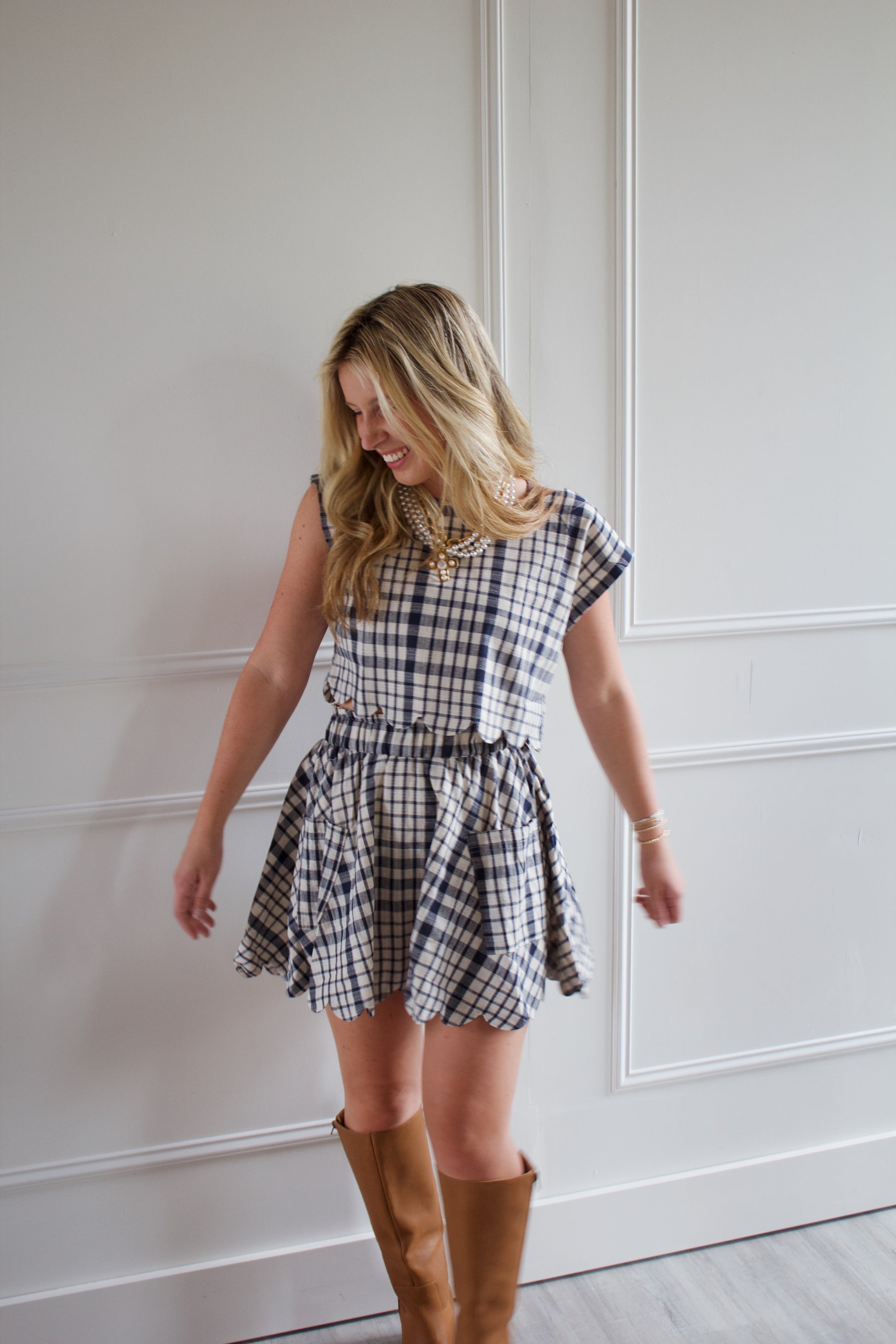 we are loving this two piece for fall! A fun plaid pattern & scalloped details make this set so girly and cute!
